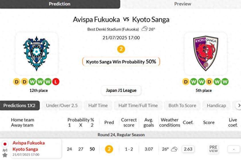 - Avispa Fukuoka are in an unfortunate period, having won just 2 of their last 12 matches in J1 League.