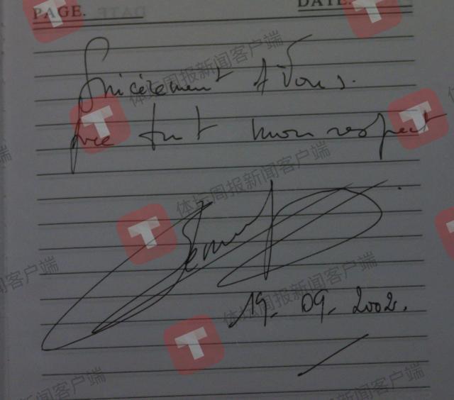 勒梅爾給記者的留言和簽名。圖/馬德興
