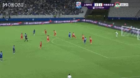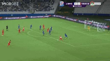 加時賽第11分鐘,邁達納解圍失誤,劉誠宇補射破門。上海申花3比2領先河南隊。