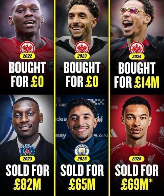 當年巴黎還有內馬爾、姆巴佩等超巨,輪不到毛頭小子埃基蒂凱大展拳腳,所以他2024年初就離開巴黎,租借去了法蘭克福。後來法鷹很快選擇買斷,轉會費僅花1650萬歐元,但巴黎也得到了20%的二次轉會抽成。如今看來這一條定的非常明智,意味着埃基蒂凱加盟利物浦將爲大巴黎帶來上千萬的回報。