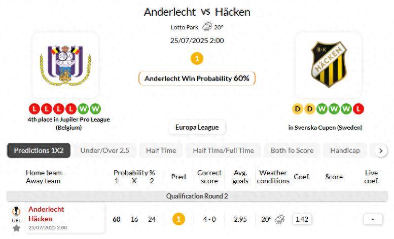 Häcken has clinched victory in 50% of their last 2 Europa League outings and has an impressive record of winning 8 out of their last 16 away matches