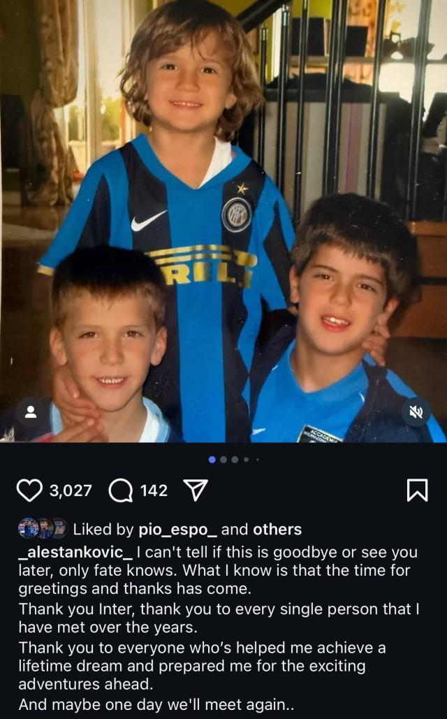 離開國米之際,亞歷山大通過社交媒體告別:“我無法說這是告別還是以後再見,只有命運知道。我唯一知道的是,告別和感謝的時刻已經到來。感謝國際米蘭,感謝這些年來我遇到的每一個人。感謝所有幫助我實現畢生夢想、爲我準備迎接未來精彩冒險的人。也許有一天,我們還會再見。”