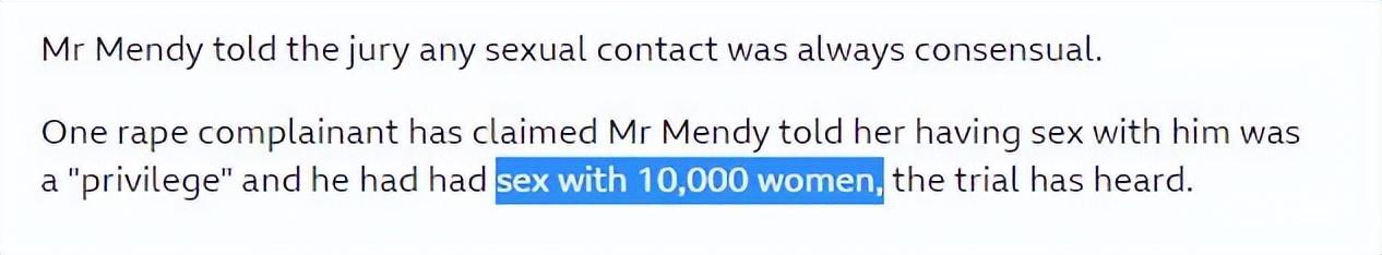 門迪第二個噁心行爲,是跟女受害者炫耀自己睡過1萬個女孩,並給對方洗腦跟自己發生關係一種榮幸。