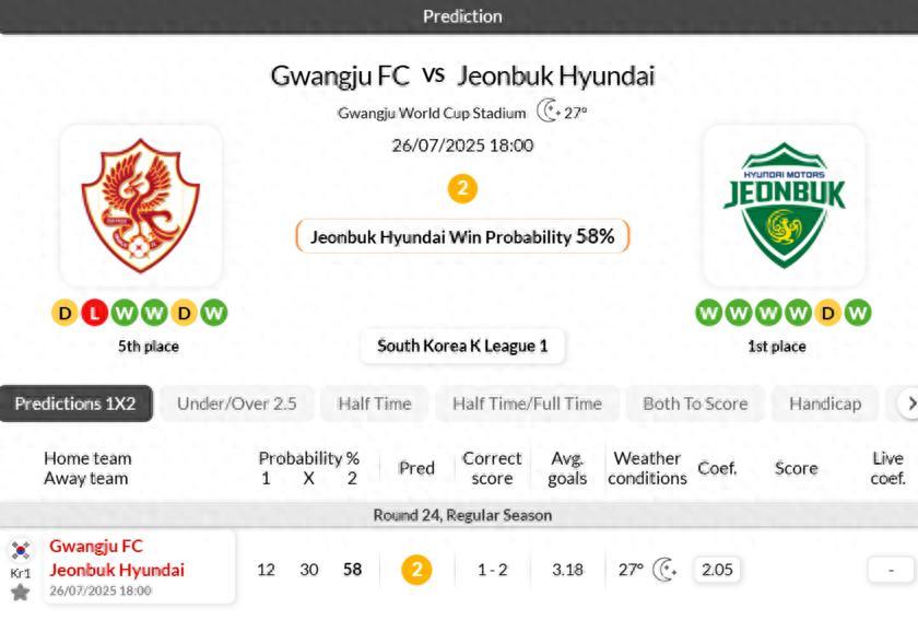 - Jeonbuk Hyundai are undefeated in 25 of their last 28 games against Gwangju FC in K League 1.