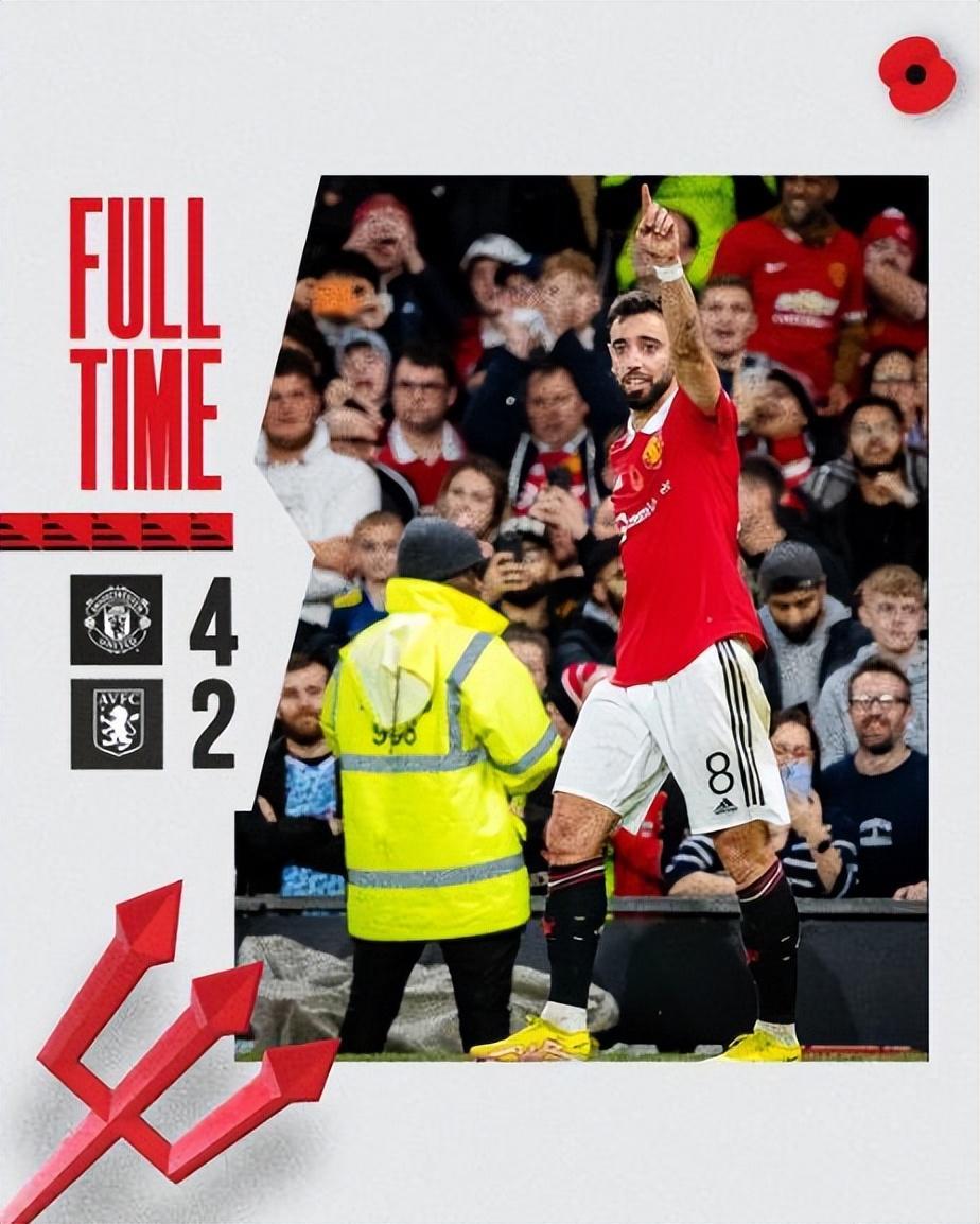 北京時間11月11日04:00,英格蘭聯賽盃第三輪,B費傳射建功,馬夏爾、拉什福德和麥克托米奈各進一球,加納喬助攻雙響,最終曼聯主場4-2逆轉維拉,有驚無險地晉級16強。
