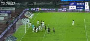 易邊再戰,浙江隊換上了另一位新援卡列洛。第50分鐘,卡列洛禁區線上得球轉身低射被魏黽哲撲出。隨後李提香開出右路角球,盧卡斯前點頭球破門,浙江隊將比分扳平。