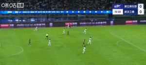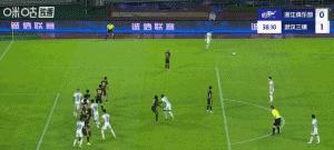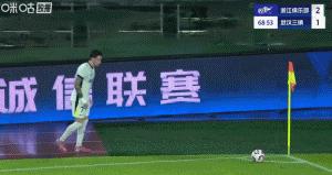 第64分鐘,浙江反超比分,奧烏蘇右路擺脫後強行傳中,王鈺棟力壓鄧涵文頭球破門,浙江隊2比1領先。