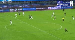 比分被扳平後,浙江隊用弗蘭克換下了王鈺棟。第89分鐘,三鎮右路角球被解圍,紹爾禁區前遠射高出。補時第1分鐘,陳哲超左路強行傳中,圖多列小禁區墊射高出。補時第5分鐘,紹爾個人帶球到禁區弧頂低射,趙博側身將球撲出。補時第9分鐘,弗蘭克中場斜塞左路,米特里策個人帶球突入禁區面對賀慣的防守左腳推射遠角,球擊中立柱內側滾入網窩,最終浙江隊憑藉此球3比2絕殺武漢三鎮。