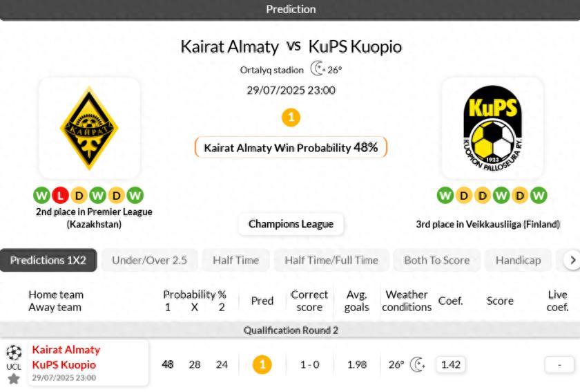 - In KuPS Kuopio''s 3 most recent Champions League matches, there have been under 2.5 goals scored.