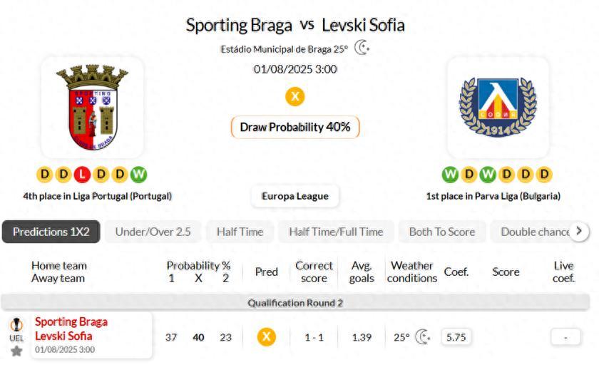 索菲亞在上3場歐羅巴聯賽的比賽中,在半場和全場都取得了平局