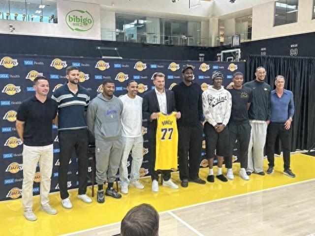 北京時間8月3日,湖人官宣以3年1.65億美元提前續約東契奇,並且爲他舉辦了新聞發佈會。湖人總經理佩林卡和主帥雷迪克一起出席。此外,湖人球員斯馬特、艾頓、八村壘、範德比爾特、文森特、克勒貝爾、海斯、蒂耶羅都出席了新聞發佈會。