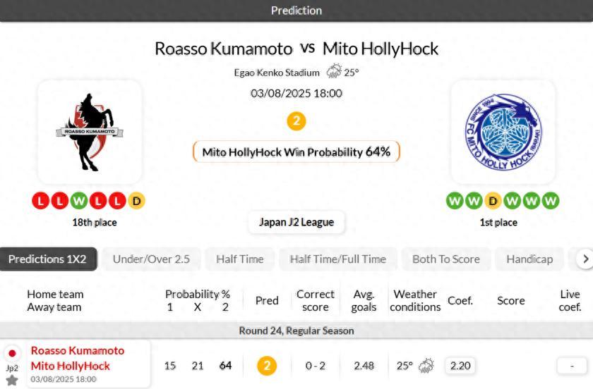 - Roasso Kumamoto''s form hasn''t been good, as the team has won only 1 of their last 12 matches (J2 League).