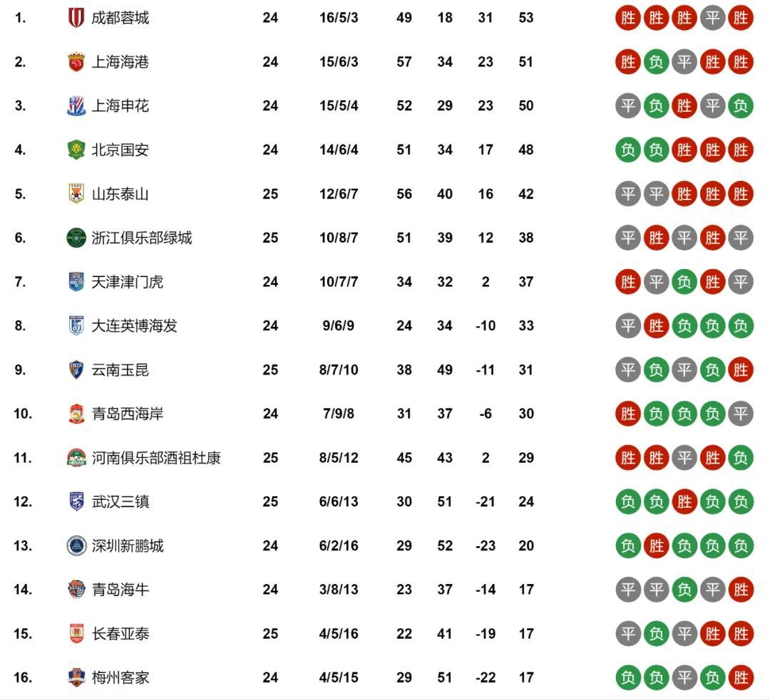 目前,青島海牛、長春亞泰和梅州客家積分都是17分,淨勝球則是青島海牛-14球、長春亞泰-19球,梅州客家-22球,由此青島海牛暫時逃離了降級區。