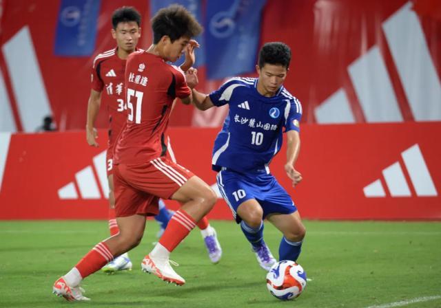 這不僅是因爲毛鵬、孫利俊雄均是出自麓山國際,在2024年首屆全國青少年三大球運動會中,他倆也是湖南隊的領軍球員,並最終率隊獲得第十名。其中小組賽首輪面對國腳王鈺棟領銜的浙江隊,當時,以麓山國際球員爲班底組建的這支湖南隊,曾一度有機會爆冷取勝對手,只是在第91分鐘遺憾地被王鈺棟絕殺。但在那樣一場堪稱中國青少年同年齡段最高水平的較量中,這批麓山國際球員的成色已得到充分體現。半年以後,作爲湖南U18全運隊的主力軍,他們又率隊在第十五屆全運會男足U18資格賽中,以3勝2負的優異成績獲得C組第二,成功晉級決賽階段,這也是湖南男子足球時隔46年後再次躋身全運會決賽圈,歷史意義非凡。