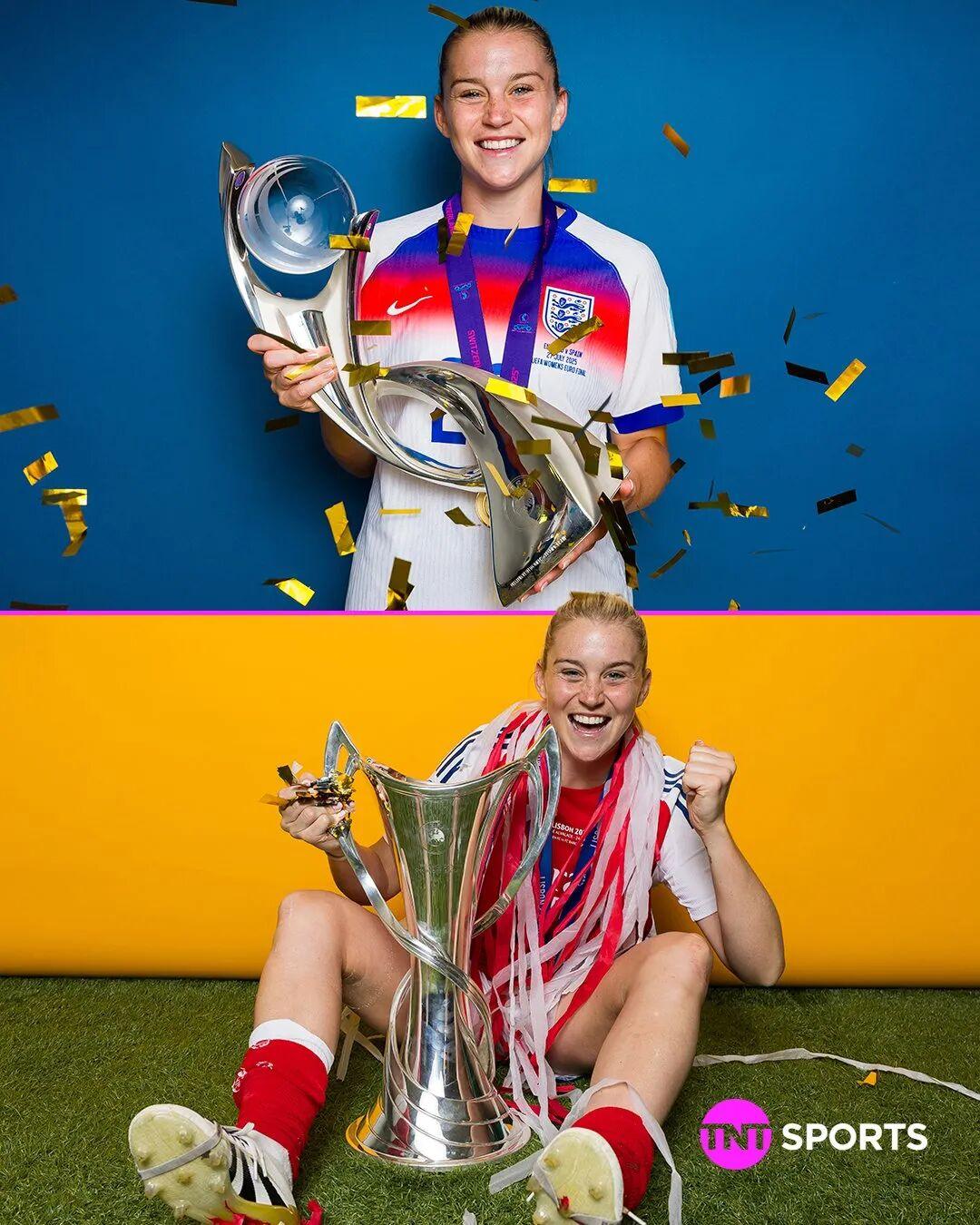 去年夏天,卡爾登黛轉會阿森納,不僅在上賽季斬獲女足英超官方與球員工會評選的雙料最佳球員頭銜,還隨隊在女足歐冠決賽中擊敗前東家巴薩奪冠,實現個人女足歐冠四連冠;女足歐洲盃決賽中,她同樣取得了進球,而邦馬蒂當時罰失點球導致球隊丟冠。