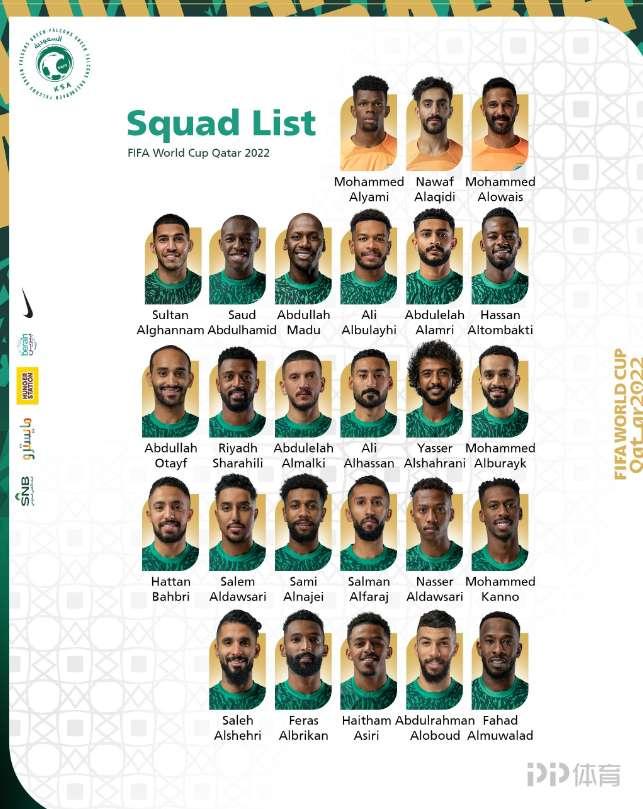 11月12日訊 沙特國家隊公佈26人世界盃名單,球員全部出自本國聯賽,其中12人來自利雅得新月。