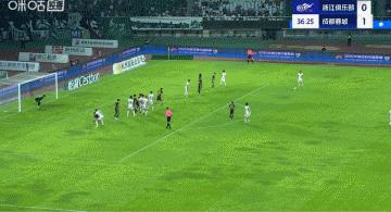 第37分鐘,周定洋禁區前被犯規倒地,主裁判罰任意球,羅慕洛直接轟出世界波,蓉城2比0領先浙江隊。