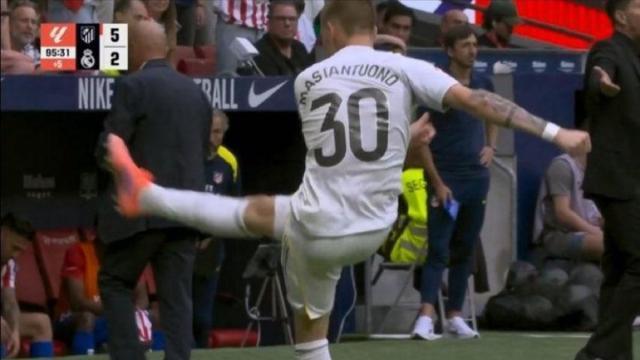 2球落後時,皇馬嘗試組織進攻,但面臨馬競以逸待勞的防守,與其說是爭取扳平比分,不如說是儘量留下一個“我盡力了”的積極印象。勞爾·阿森西奧一次帶球前插,與佯裝拉邊又突然變向的隊友馬斯坦託諾撞在一起,球丟了。兩個年輕人,一個本賽季失去位置,一個初來乍到,缺乏默契其實很正常。但這是在西甲,是皇馬,不是初中生放學後拉人踢的街邊野球。這種相撞的抽象程度已經超出了技戰術範疇。