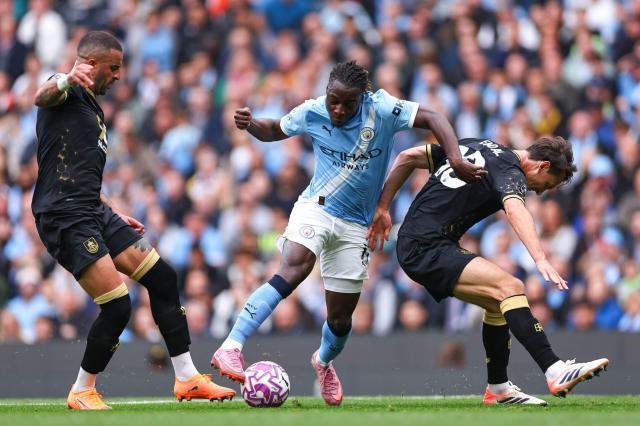那一球曼城衆將其實已經基本防守落位,單禁區內就有6、7名藍衣球員,但上前封傳中的右後衛努內斯漏了小門,中間魯本·迪亞斯又出腳慢半拍,反倒爲對手做了折射的彈道。此球有一定偶然因素,但仍可謂“典型的曼城式失球”。上賽季類似情況發生過不少次,如果本場比賽再多一點,那最終比分肯定不是現在這個結果。