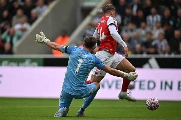 2比1而已,落後時間足足有50分鐘,這麼吹是否有點過分?不,如果你仔細看過比賽全程,就會知道“這本應是一場阿森納的大勝”。如果不是門將波普高接抵擋,主隊紐卡斯爾在上半場就該被打花了——單出任中場的埃澤就有兩記力敵千鈞的禁區線內凌空爆射被飛撲,左邊鋒特羅薩爾更是有過一腳小禁區邊角的重炮轟在了近側立柱上。