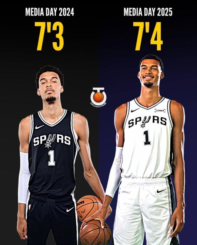 09月30日訊 NBA球隊媒體日,馬刺公佈了訓練營名單。美媒從名單上發現,21歲的文班亞馬長高了1英寸,去年媒體日時他的身高是7英尺3英寸(約2米21),現在是7英尺4英寸(約2米24)。