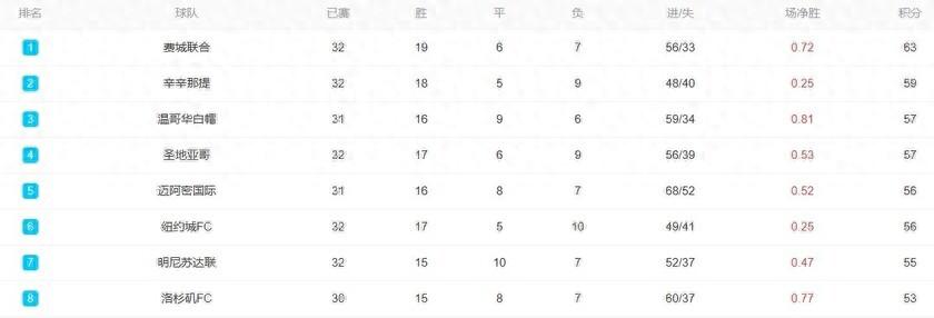 本場比賽過後,美職聯常規賽冠軍的懸念似乎已提前失去。目前,在美職聯東西區的常規賽總排名上,費城聯32輪積63分位居榜首,邁阿密國際少賽一輪積56分排在第六。