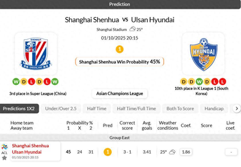 - Shanghai Shenhua have seen over 2.5 goals scored in their last 3 meetings with Ulsan Hyundai in Asian Champions League.