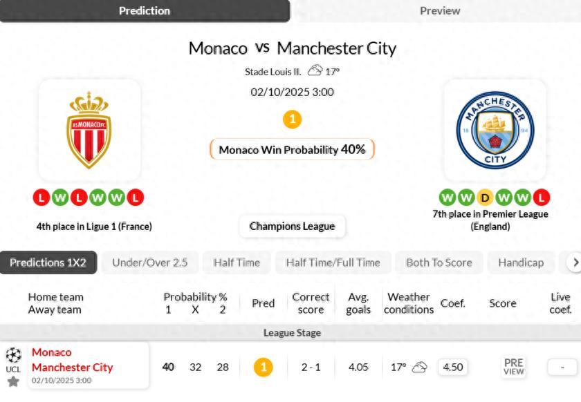《海外情報》爲大家帶來週三的歐冠賽場海外消息,今日比賽分析是摩納哥VS曼城