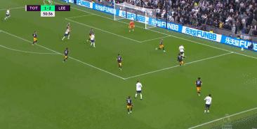 第51分鐘,凱恩近距離打門被擋出後,本-戴維斯禁區外遠射得手,熱刺再度扳平2-2。