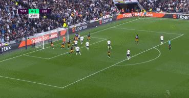 第24分鐘,佩裏西奇開出右側角球,凱恩混戰中凌空掃射破門,熱刺扳平1-1。