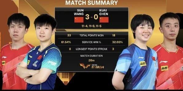 王楚欽/孫穎莎3比0戰勝隊友陳垣宇/蒯曼