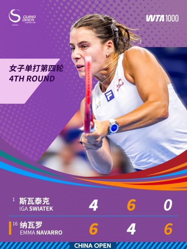 中網女單第四輪,16號種子納瓦羅決勝盤送蛋,以6比4、4比6、6比0挑落頭號種子、前賽會冠軍斯瓦泰克,職業生涯第三次擊敗世界前二,這也是她第三次躋身1000賽八強。