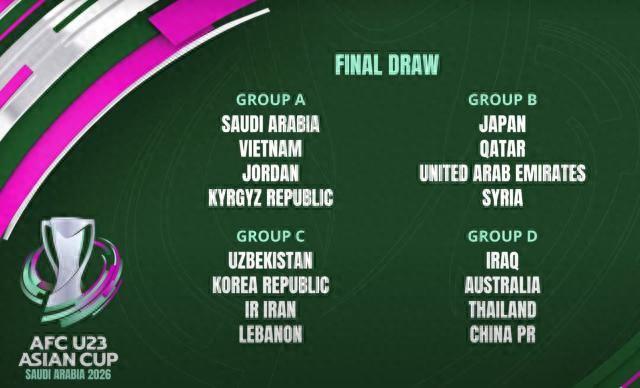 體壇週報全媒體原創10月2日,U23亞洲盃決賽階段比賽分組抽籤儀式進行。中國隊最終與伊拉克隊、澳大利亞隊、泰國同分在D組。本次抽籤,中國隊以第四檔次進行抽籤,避開了東道主沙特和日韓等傳統強隊。本屆U23亞洲盃共分四個小組,小組前兩名晉級八強,比賽將於2026年1月7日至25日在沙特阿拉伯舉行。A組:沙特(東道主)、越南、約旦、吉爾吉斯斯坦 B組:日本、卡塔爾、阿聯酋、敘利亞 C組:烏茲別克斯坦、韓國、伊朗、黎巴嫩 D組:伊拉克、澳大利亞、泰國、中國