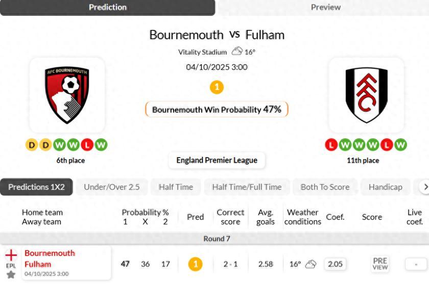 伯恩茅斯VS富勒姆