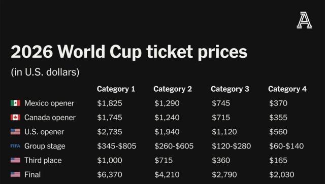 英國球迷協會(FSA)的發言人也表示,美國世界盃的天價票“令人震驚”和“無法接受”。一位名叫托馬斯·康坎農的球迷代表算了一筆賬:“如果一名球迷能順利買到從揭幕戰到決賽的四檔票,至少要花3180美元,這比卡塔爾世界盃的成本高出一倍多。再加上機票和住宿,這將成爲有史以來最昂貴的一屆世界盃!”他呼籲國際足聯應爲參賽國分配更多低價票,並將這些票集中安排在球門後的關鍵區域,以便球迷們更好地支持球隊。