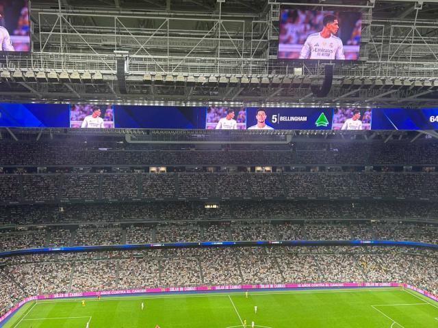 本場賽前,伯納烏中央展示了剛剛發佈的2026年美加墨世界盃官方用球的巨幅圖案,這也是如今皇馬和國際足聯的良好關係的體現。在巴薩與歐足聯關係改善,歐超聯賽基本徹底宣告流產之際,皇馬還需要維護好和國際足聯間的關係,從而尋覓更加順利的發展道路。賽前皇馬爲收穫9月西甲最佳球員和最佳年輕球員獎項的姆巴佩與居萊爾頒發獎盃,引發了伯納烏陣陣掌聲。
