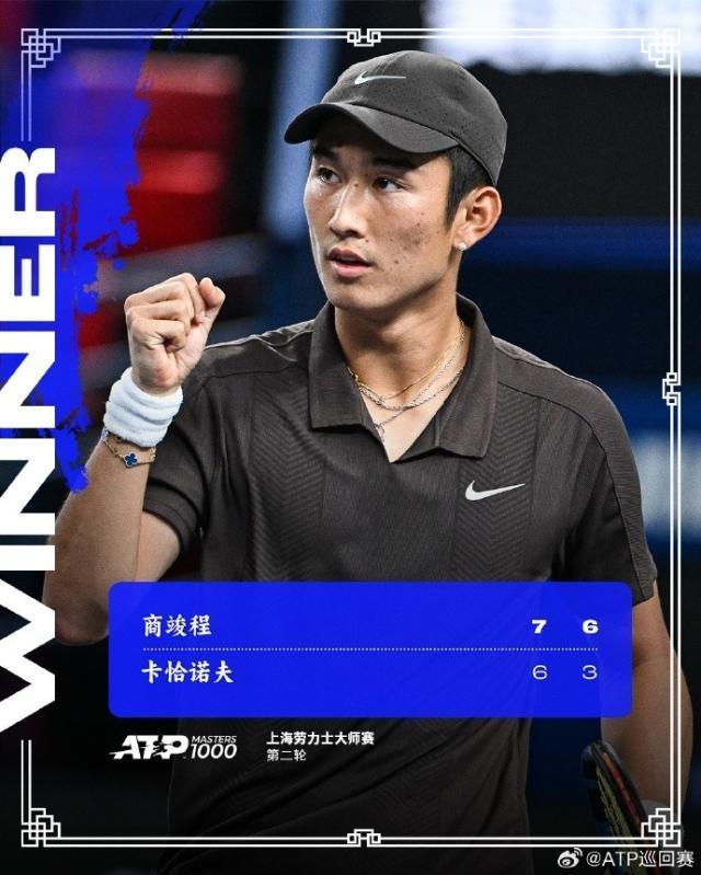 上海大師賽第二輪,商竣程2比0擊敗ATPTOP10選手卡恰諾夫,晉級32強。中國男選手擊敗TOP10勝場數: