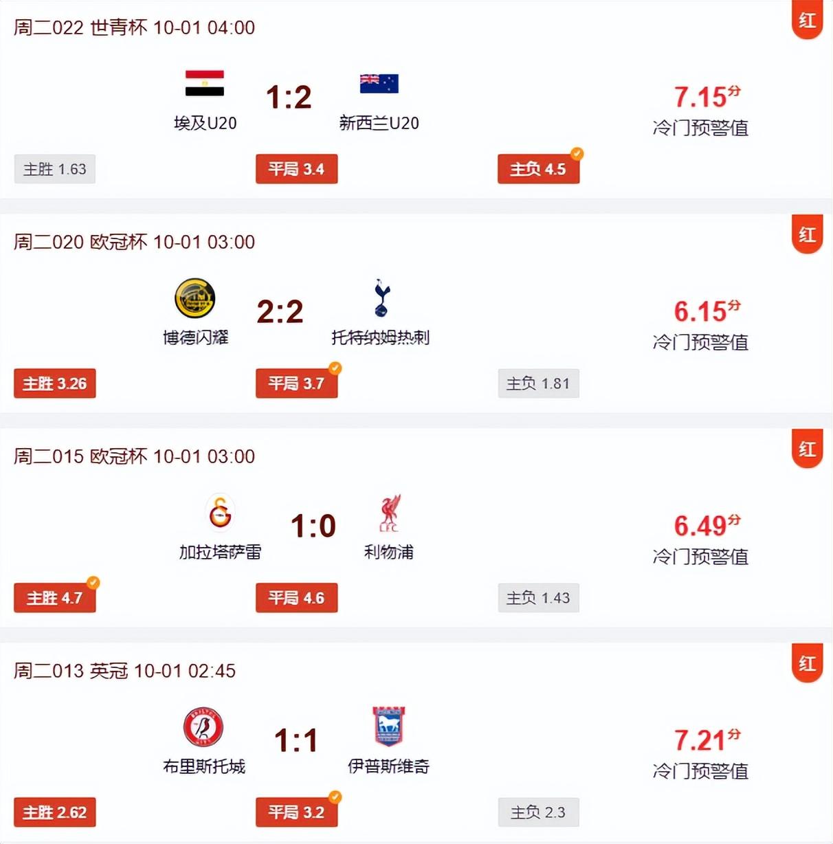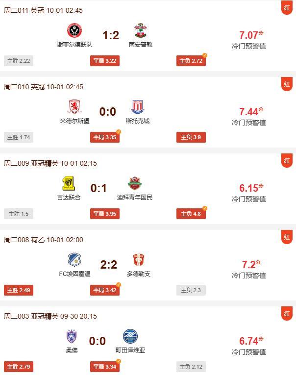 北京時間10月05日,爲大家羅列各項足球讓球勝平負和足球勝平負的賽事誤差較大場次,各位球友敬請留意。