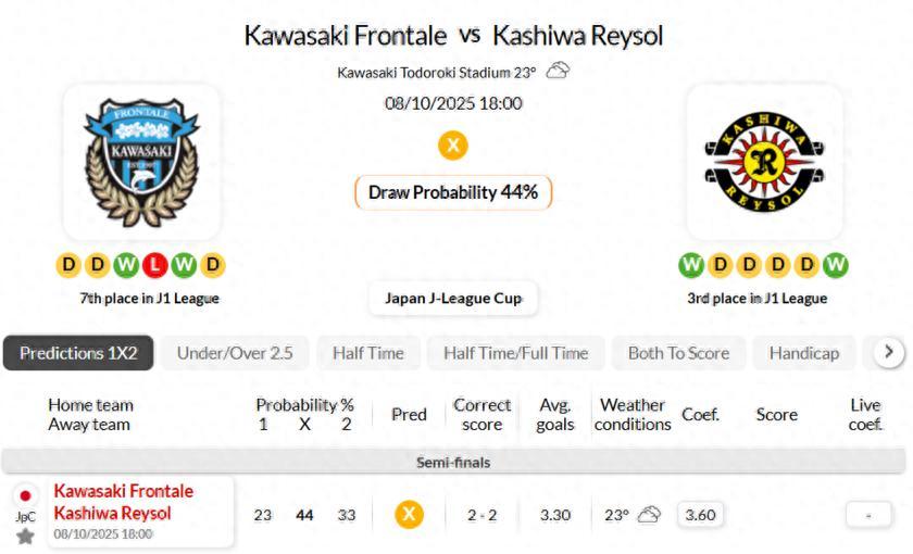 川崎前鋒在他們的日聯杯的主場比賽中平均拿2.00分