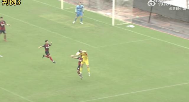 判例三:中甲聯賽第25輪,陝西聯合vs上海嘉定匯龍,比賽第11分鐘,陝西聯合35號隊員在本方罰球區內疑似手球,裁判員未判罰手球犯規。