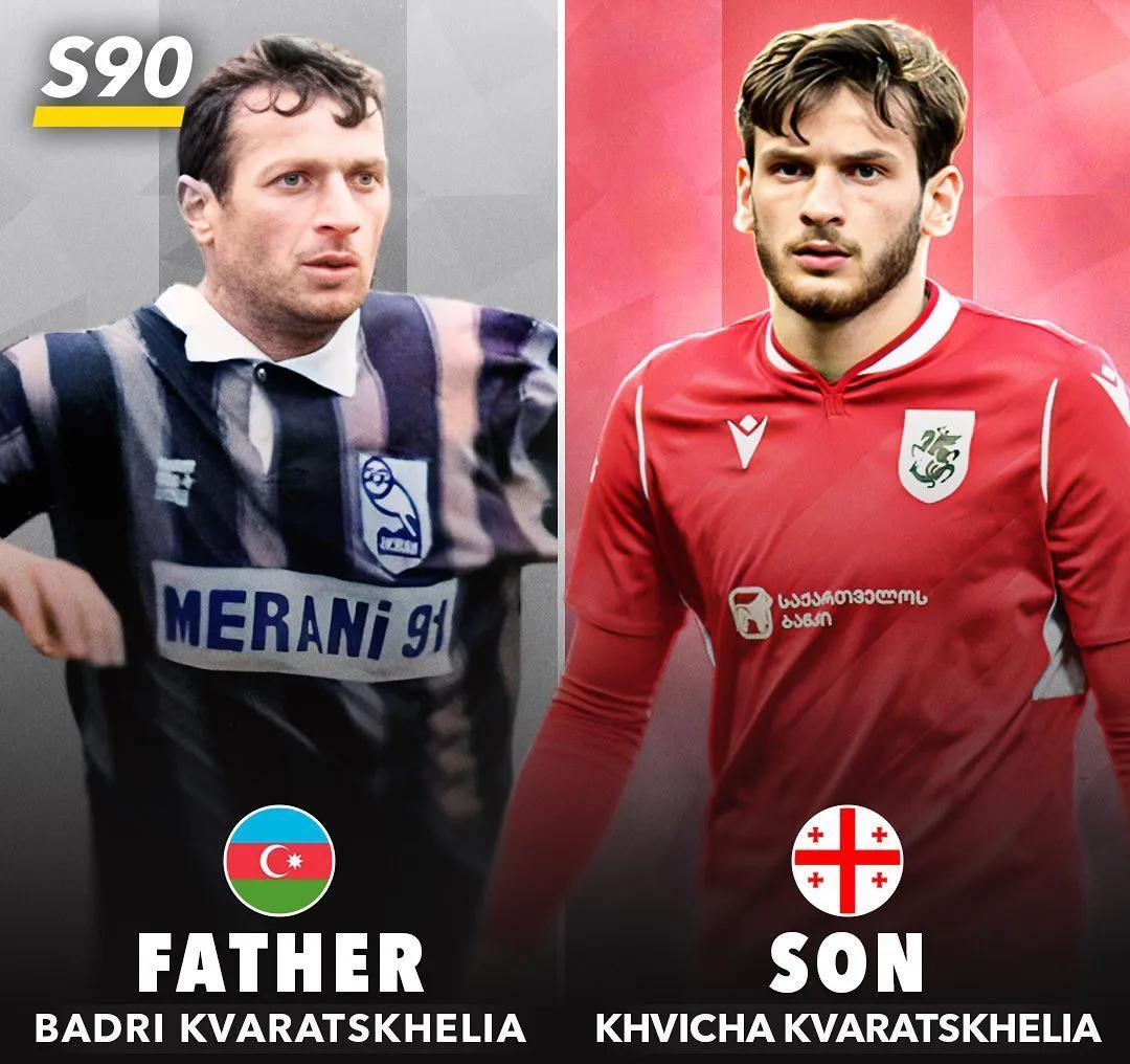 除此之外,足壇還有不少跨國籍的“父子傳承”:曾效力曼城與拜仁的德國國腳薩內,父親蘇萊曼尼曾是塞內加爾國腳;那不勒斯的比利時國腳盧卡庫,父親羅熱爾是民主剛果前身扎伊爾國腳;最離奇的當屬剛隨大巴黎拿到三冠王的克瓦拉茨赫利亞——他的父親巴德利出生于格魯吉亞,卻曾是鄰國阿塞拜疆國腳(出場3次),其中1次便是對陣格魯吉亞。