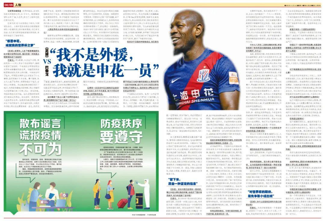 在我加盟申花之前,我的經紀團隊瞭解了申花的運作,也是非常規範的俱樂部,我來到之後深深感受到了申花方方面面的職業,因此我沒有理由不相信申花。我需要薪水生活,但是當我從經紀團隊那裏聽到包括董事長吳(吳曉暉)、總經理周和主教練吳(吳金貴)都是零工資工作的時候,我覺得自己能做到等待和信任,因爲我的前任東家和現任東家在遭遇特殊危機之前,都向我展示了足夠的誠信精神。