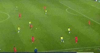 13’0比1 吉馬良斯神筆穿透韓國後防,埃斯特旺禁區右路不停球推射先拔頭籌。代表桑巴軍團第3戰,18歲的埃斯特旺已爲國家隊貢獻2球。