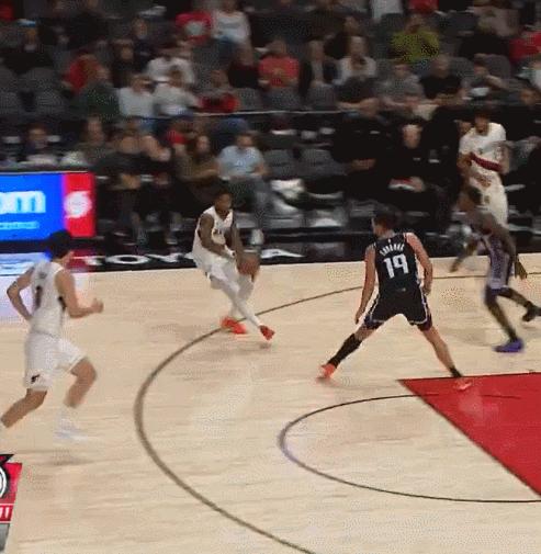 第一節比賽進入到7分41秒,比盧普斯換上楊瀚森,對位調整克林根。搭配上夏普、格蘭特、韋斯利、阿夫迪亞,開拓者拿出了一套攻防均衡的空間陣容。不過對於楊瀚森來說,直面全明星級別的小薩博尼斯,算是個不小的挑戰。