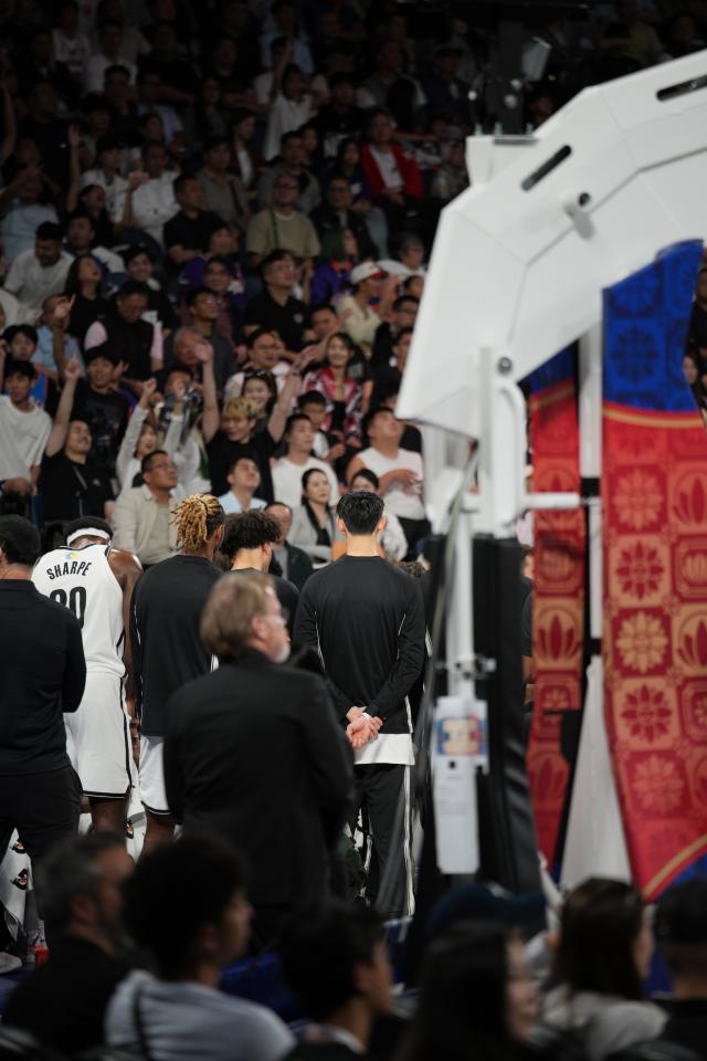 最終,比賽由籃網舊將大衛·杜克和今晚表現出色的馬丁畫上句號。效力太陽的杜克在關鍵時刻出現三分犯規,馬丁3罰2中完成準絕殺,籃網和太陽各自從中國帶走了一場季前賽的勝利。熱熱鬧鬧的“宴會”散場,我匆忙地從電梯趕去場邊,希望找到那個安靜的身影。