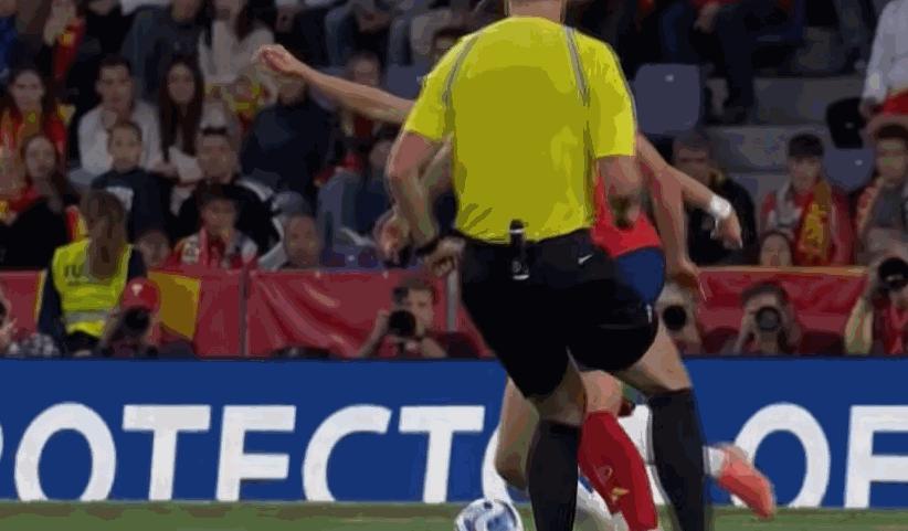 第35分鐘,佩德里送出挑傳,後插上的勒諾爾芒頭球擺渡,梅里諾門前甩頭攻門將球打進。西班牙1比0打破僵局。