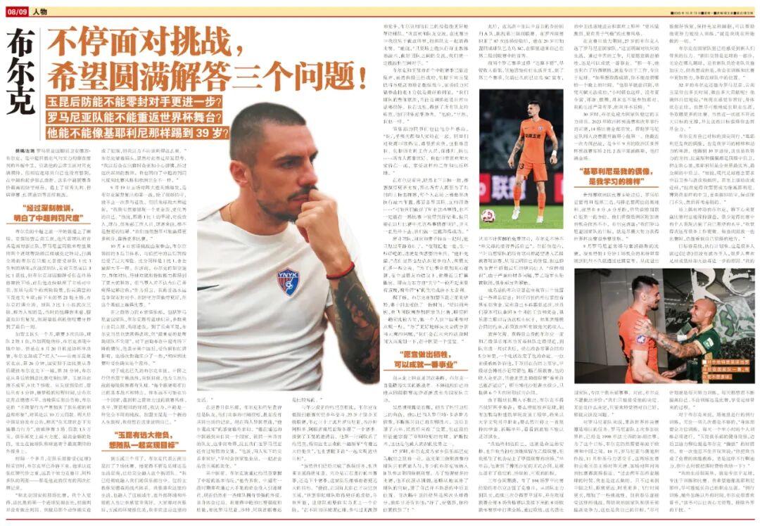 與年少成名的約尼查相比,布爾克在低級別聯賽歷經多年奮鬥,23歲才躋身頂級聯賽,年過三十才離開羅馬尼亞,爲沙特阿科多、阿聯酋班尼亞斯各踢了一個賽季。接到了玉昆的邀請後,他第一時間聯繫了約尼查,得知這支雲南的中超新軍“有着遠大的抱負”,他也想隨玉昆“一起實現這些目標”。