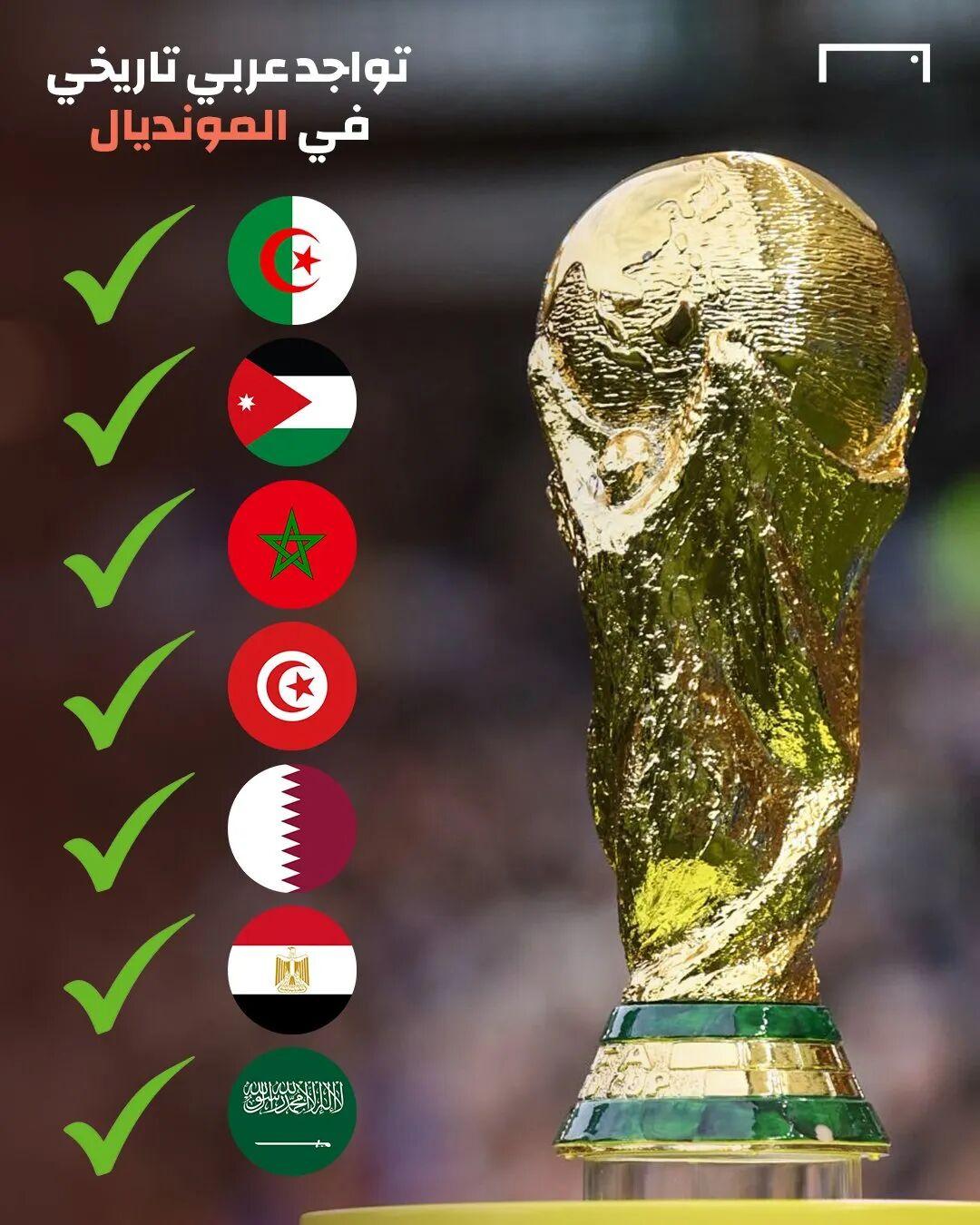 兩大洲合計17個直接出線名額,阿拉伯地區球隊獨佔7席超過全部名額的41.2%。阿拉伯地區以外的亞洲和非洲均僅出線5隊。2022年世界盃依靠卡塔爾佔據東道主名額,阿拉伯地區參賽球隊才追平歷史最高紀錄的4支(2018年)。而2010和2014年世界盃,阿拉伯球隊均僅有阿爾及利亞唯一的代表,2010年更是合計10支出線隊阿拉伯地區僅佔1支,創1978年世界盃以來歷史最低。