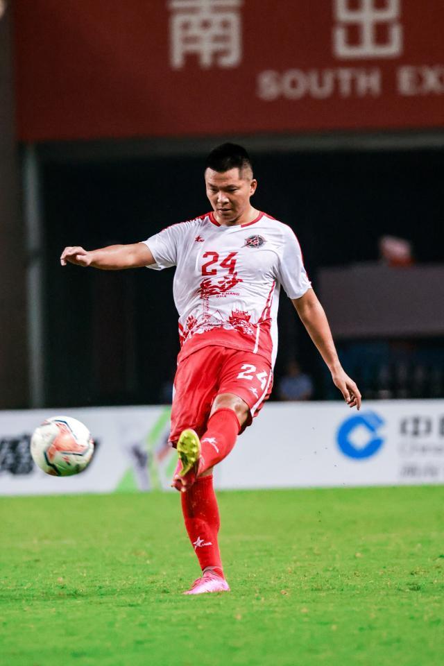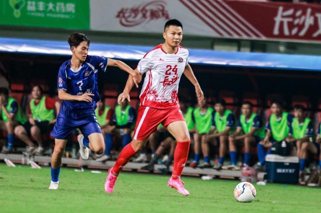 36歲的楊柯在湘超賽場踢得依然遊刃有餘。長沙市足協供圖