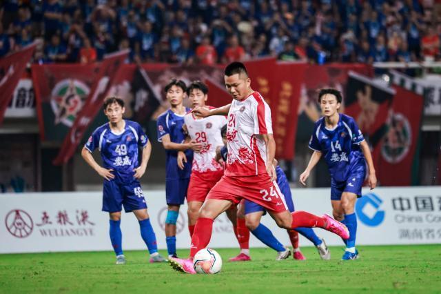 湘超首輪,楊柯的點球幫助球隊將比分擴大爲2-0。長沙市足協供圖